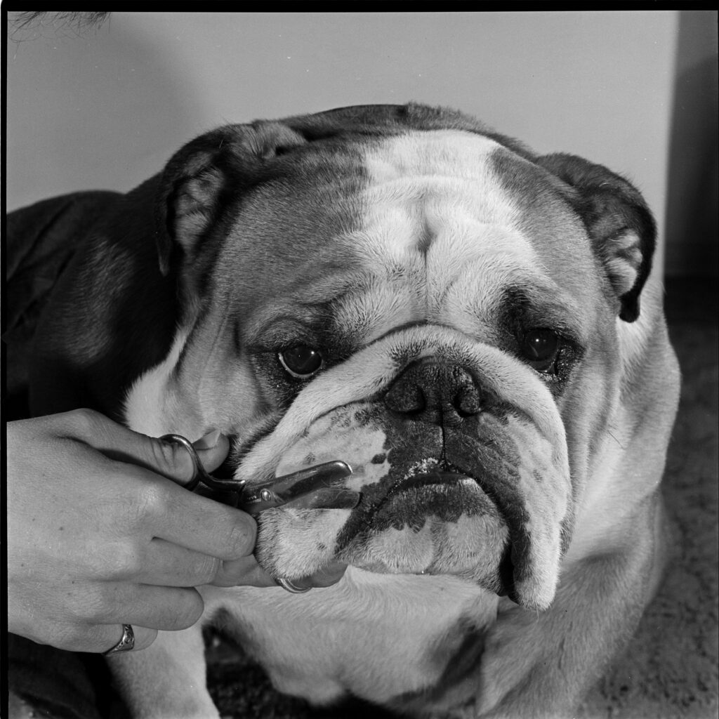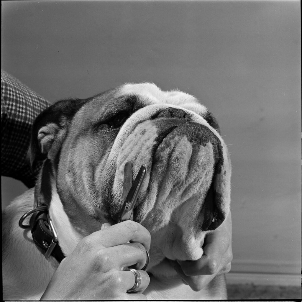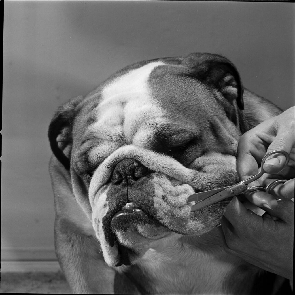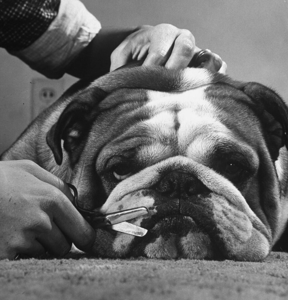 Kippax Fearnought, here going through his grooming routine in 1955, is the last bulldog to win Best in Show at the Westminster competition.