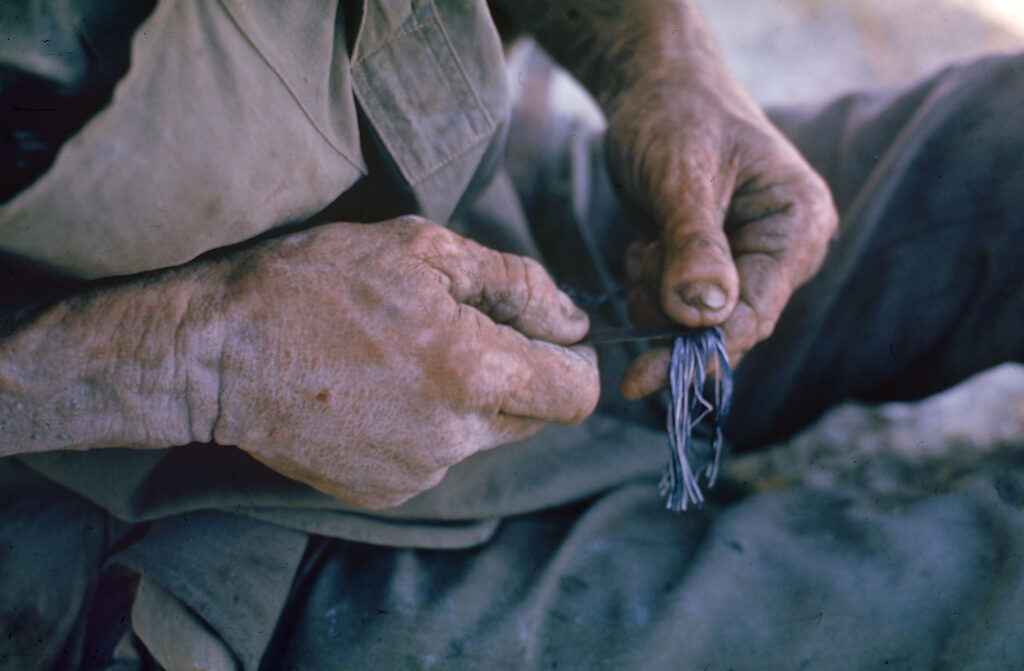 Battered hands fashion a popper on the Australian Outback, 1966.