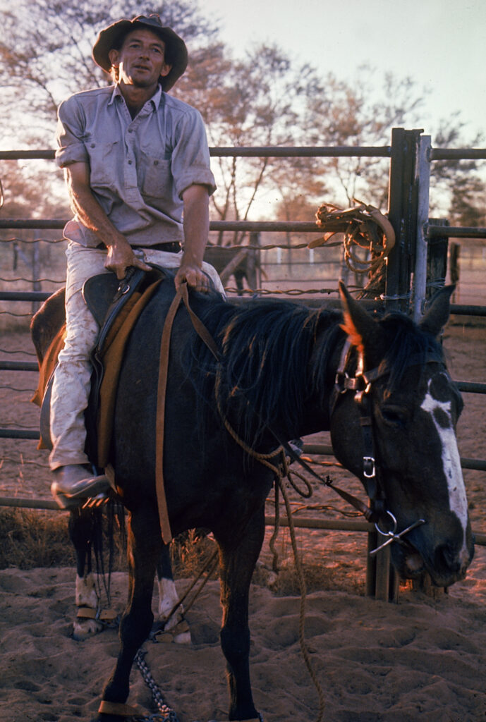 In the Australian Outback a stockman worked with one of his horses at dawn, 1966.