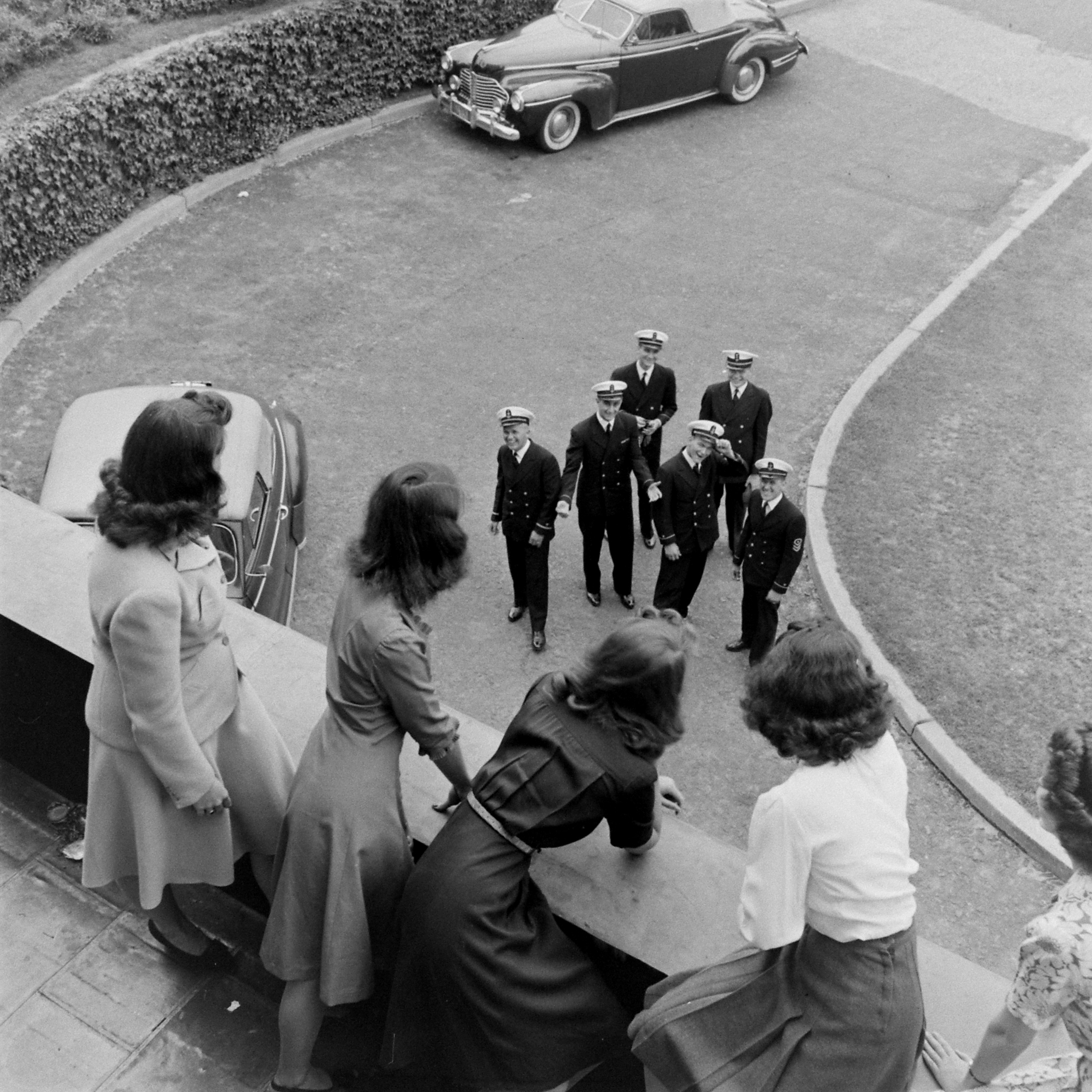 Coast Guard cadets came to pick up their dates at Connecticut College, 1945.