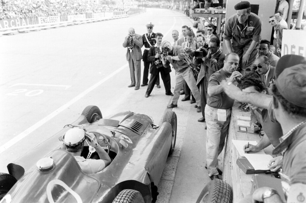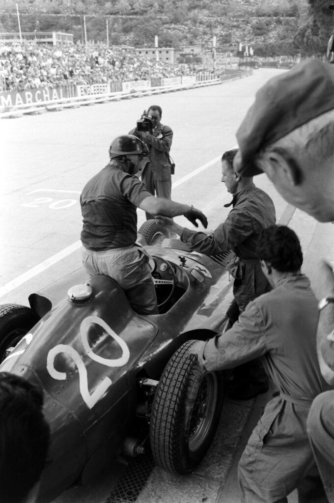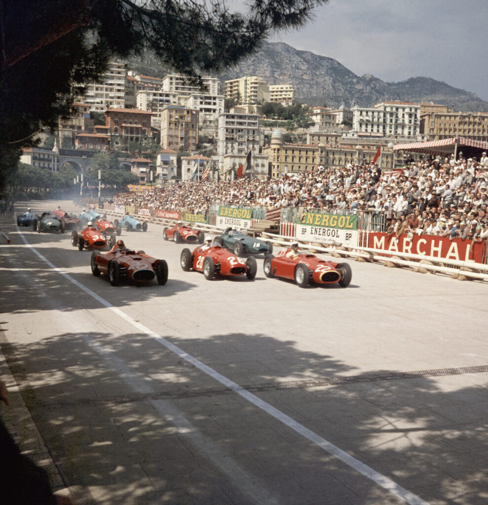 A Ferrari car at the Monaco Grand Prix, 1956.