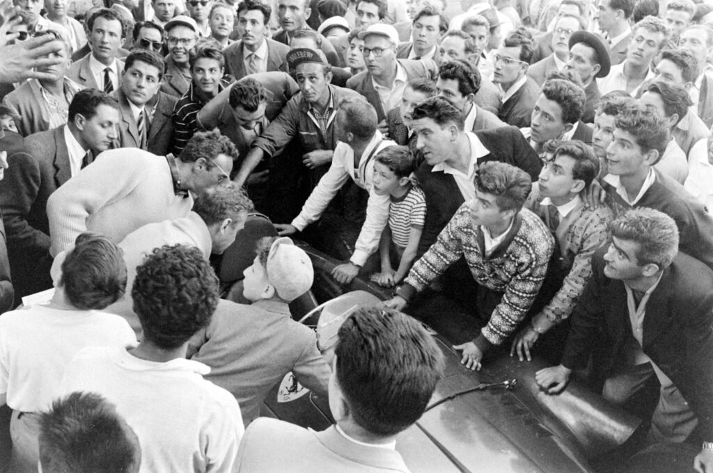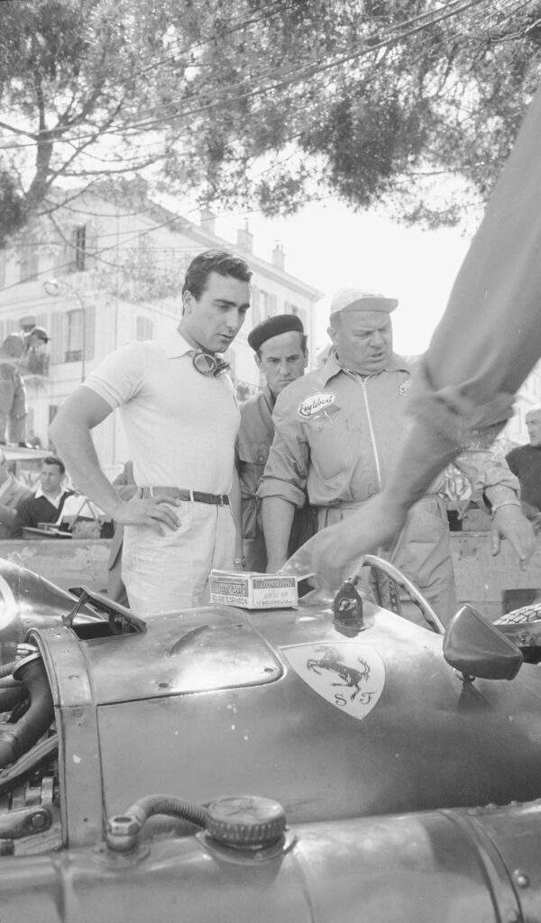 One of Ferrari’s drivers, Peter Collins, is photographed with his wife, actress Louise Cordier, and they were a certified mid-50s glamour couple. Reportedly the only person who didn’t approve of their marriage was Enzo Ferrari, who worried that the relationship would distract Collins from his racing.