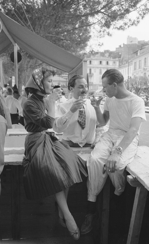 Ferrari racing driver Peter Collins enjoyed a drink with his soon-to-be-wife, American actress Louise Cordier at the Monaco Grand Prix, May 13, 1956.