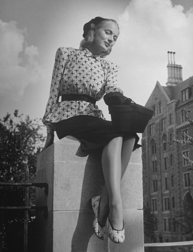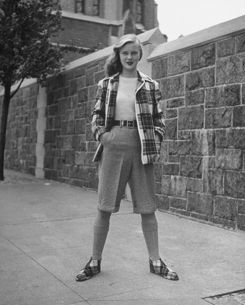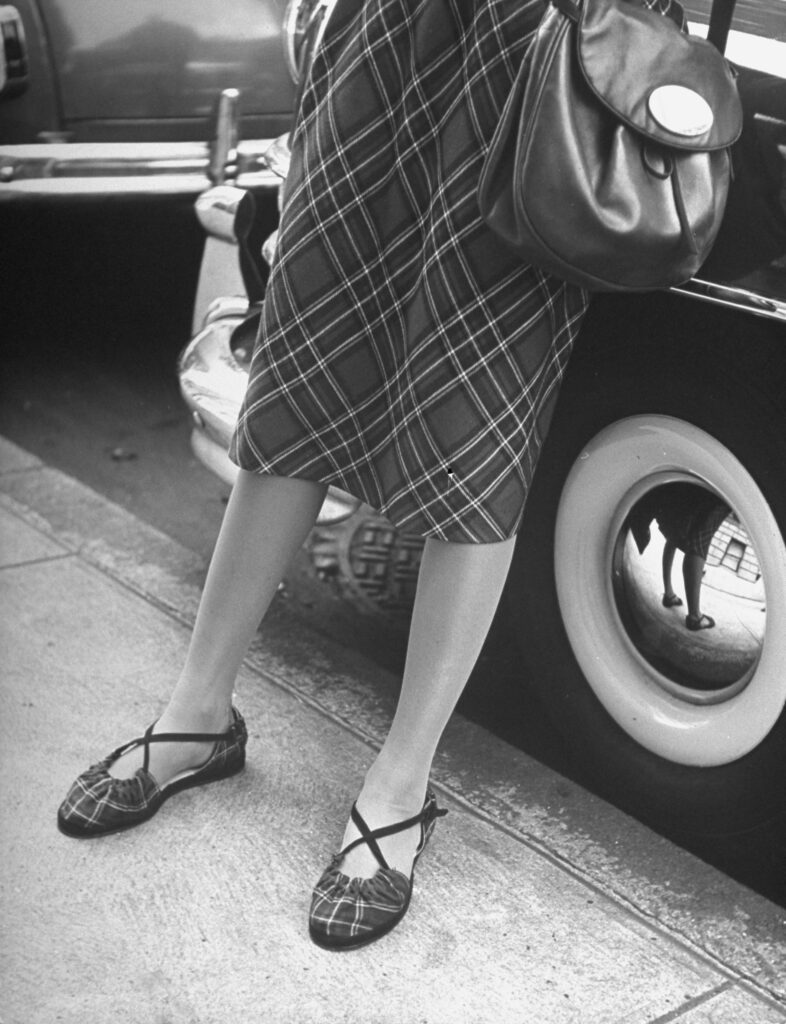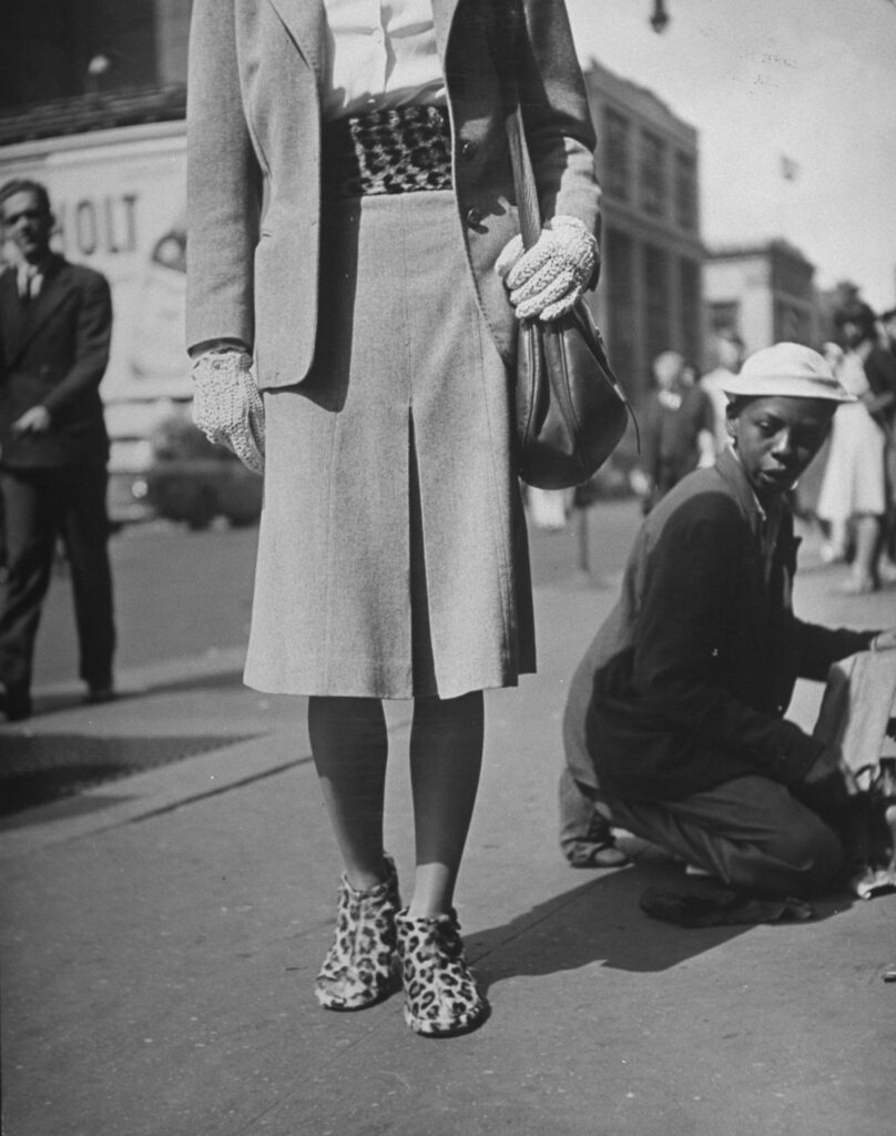 LIFE noted that manufacturers had been forced to make fabric shoes during World War II because of rationing that limited the supplies of leather (and also rubber). But during those war years manufacturers used dark-colored cloth so as not to draw attention to it. In 1946 some manufacturers switched gears and decided to the highlight the presence of cloth by using bright patterned fabric. LIFE said that this approach gave outfits a “startling footnote.”